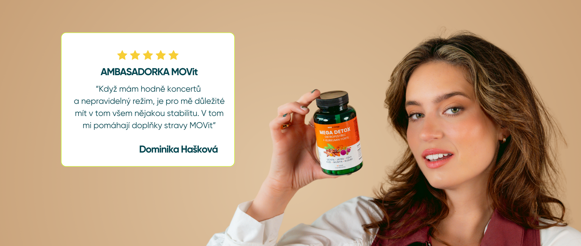 Dominika Hašková je zpěvačka a frontmanka kapely We Are Domi a finalistka soutěže Survivor. Po návratu ze Survivoru začala více naslouchat svému tělu a řešit regeneraci i celkovou rovnováhu. V té době jí její maminka doporučila vyzkoušet naše probiotika Extra Strong, což byl tip, který se jí samotné osvědčil, a tak začala používat dlouhodobě právě naše doplňky pro podporu zdraví.