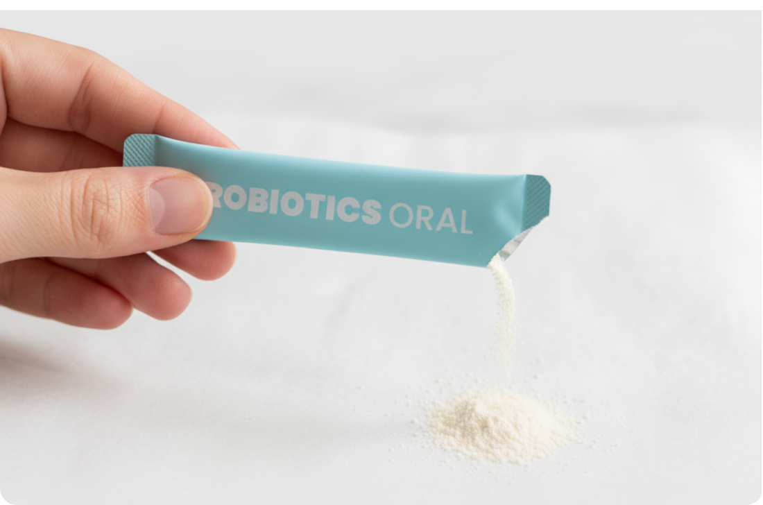 Rezistentní dextrin, Inulin, Erythritol, Brusinkový prášek, Vitamin C, FOS (fruktooligosacharidy), Streptococcus salivarius subsp. thermophilus ST81, Streptococcus salivarius subsp. thermophilus ST27.