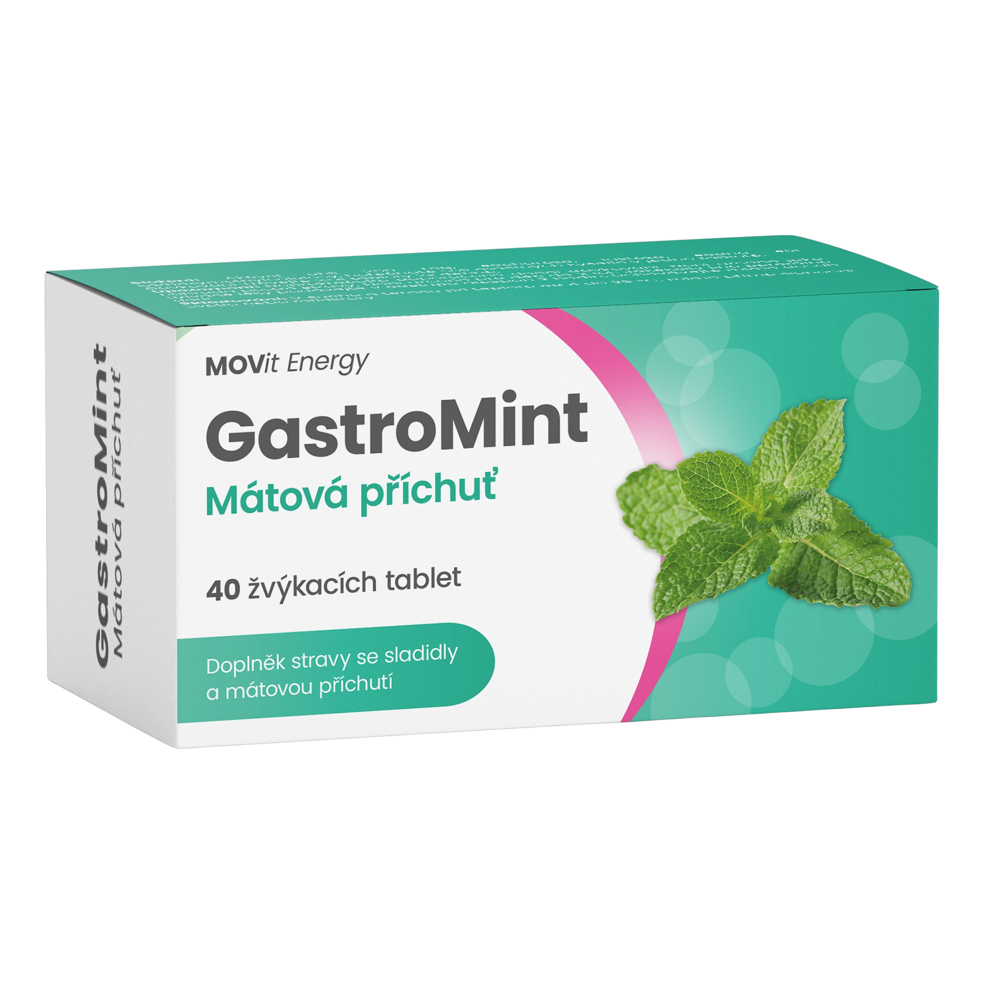 Doplněk stravy se sladidly a mátovou příchutí.
