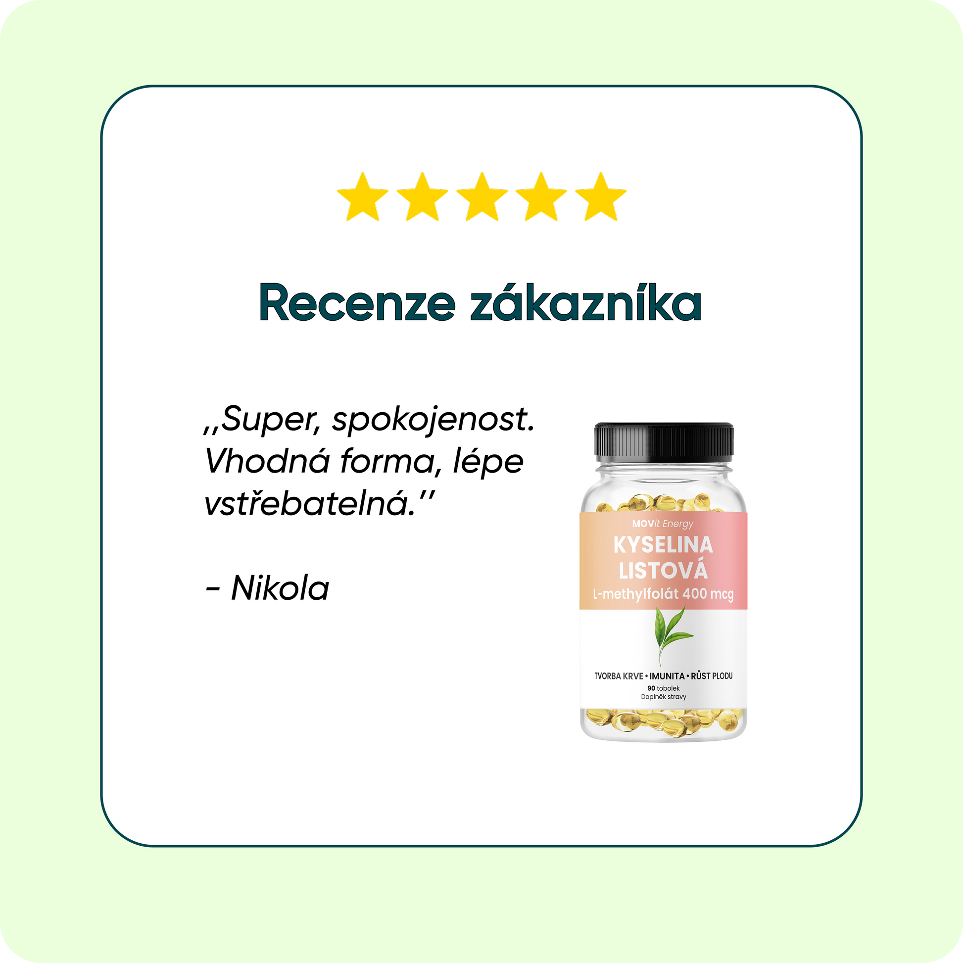 Hlavní benefity MOVit Kyselina Listová B9 L-metylfolát 400 mcg: