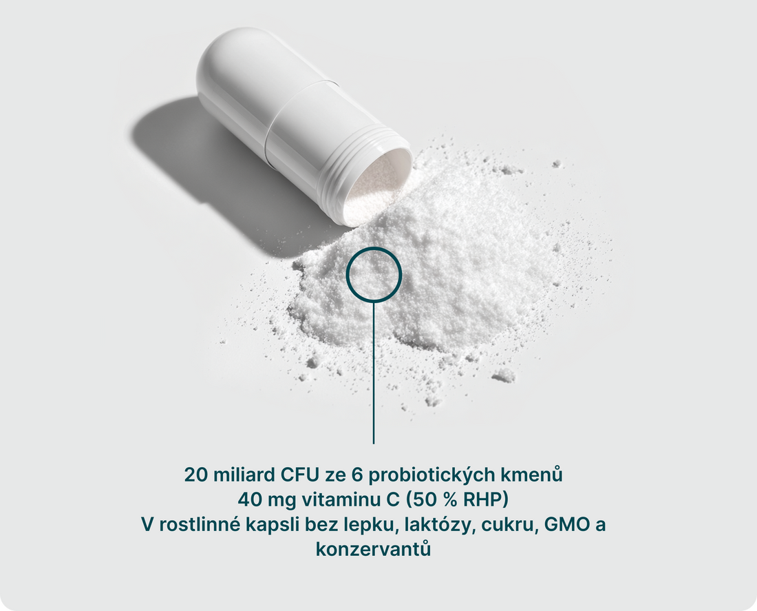 Komplex 6 probiotických kmenů, 20 miliard CFU a vitamin C pro zdravé trávení a silnou imunitu.